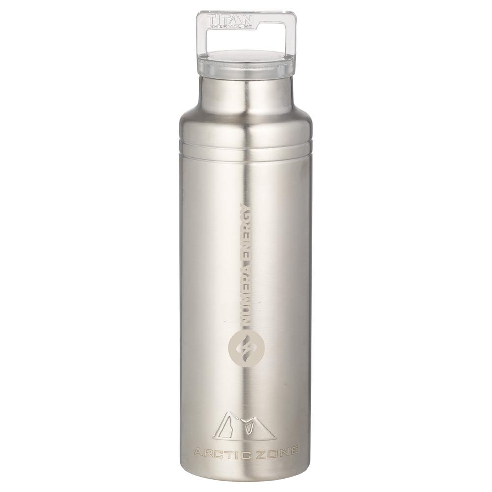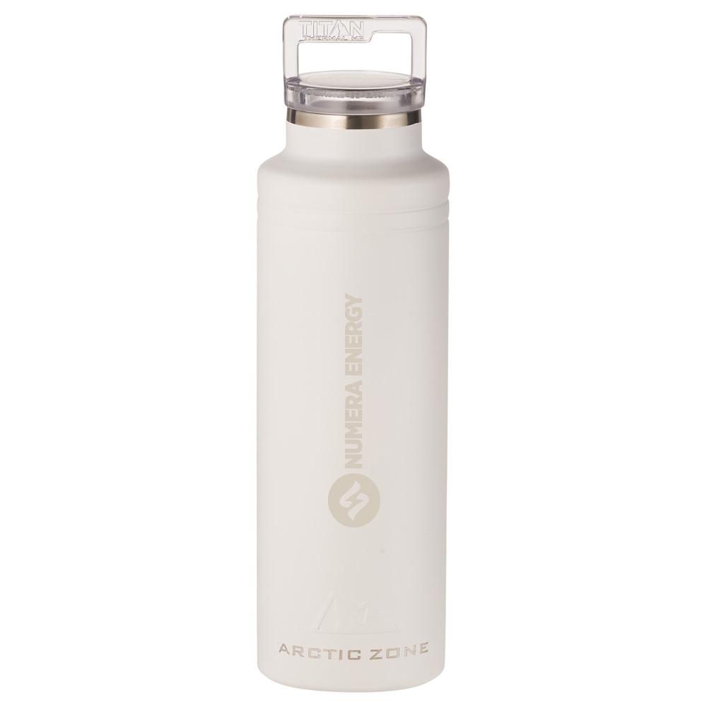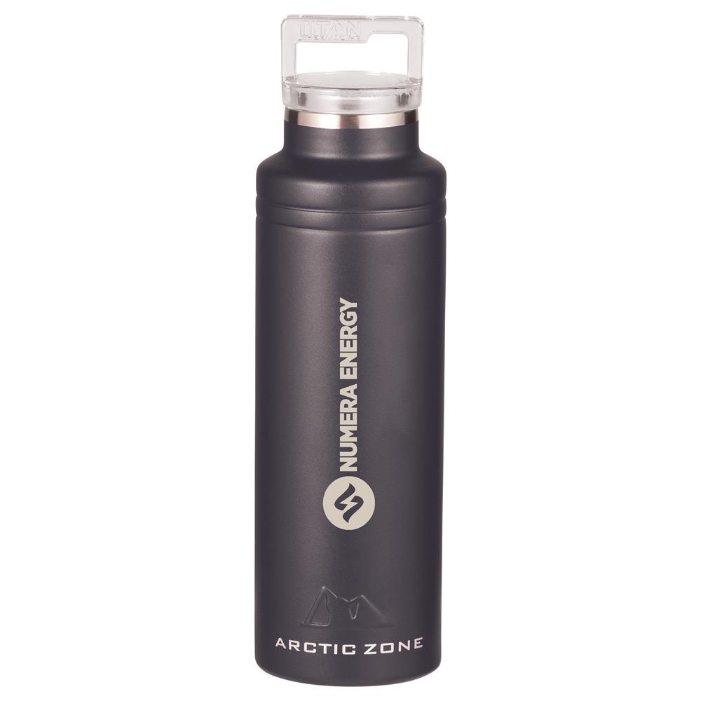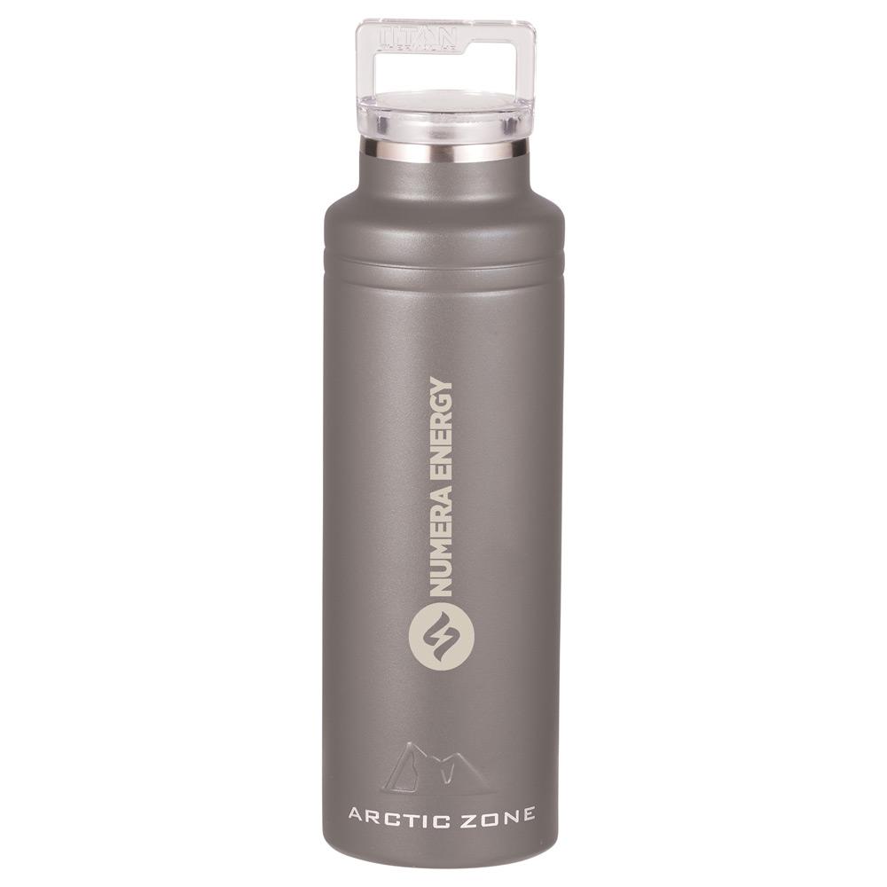 Stylish and highly functional, this copper vacuum bottle by Arctic Zone features a translucent threaded lid with a carry loop and a wide mouth for easy cleaning. 12 hour hot insulation and 48 hour cold insulation. Available with a 1-3 color imprint on one or both sides of the bottle.