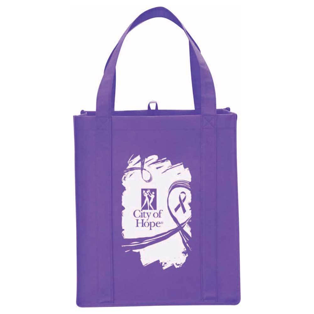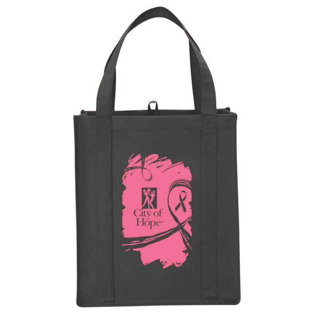 Your go-to shopper tote, the Big Grocery Non-Woven Tote is big enough for a short shopping event or day trip, with reinforced handles and a removable bottom board for durability and stability. Available in a wide range of colors, with either a one-color or full-color imprint available to promote your brand!