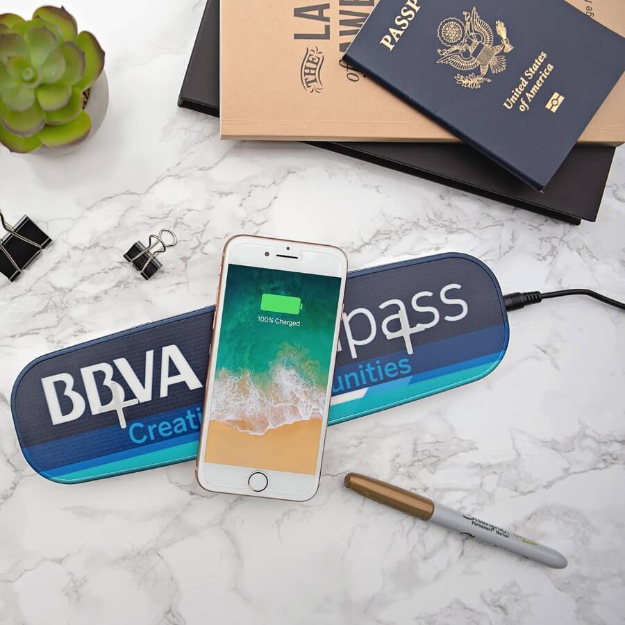 Reduce cable clutter! The Bolton allows you to charge up to 5 devices at once via wireless and wired charging, all in a compact package that features your branding in full color.