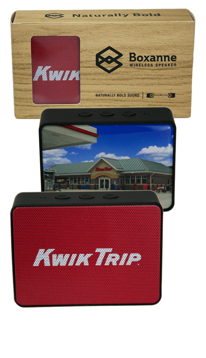 Proving that awesome tech can still come at a low price tag, the Boxanne speaker combines an ultra-portable form, on-speaker controls, Bluetooth Wireless, strong sound, and 2 full-color imprint areas in a single price-right speaker.