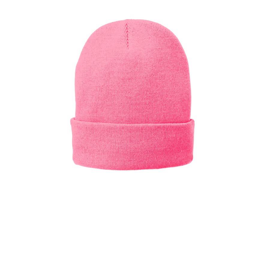 Acrylic knit cap with a foldover cuff and soft poly fleece lining. Available in 10 colors, with up to 8,000 stitches of embroidery on the cuff or front of hat included in your price. Minimum 12 pieces.