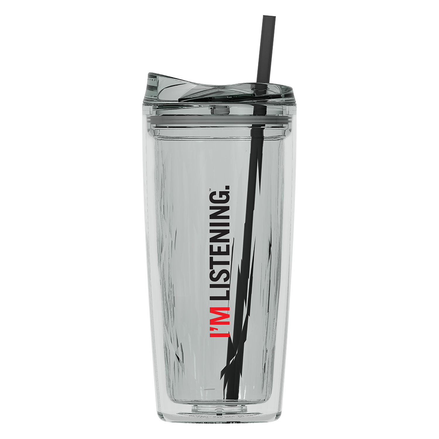 Double Wall acrylic tumbler, with a clear outer wall, color inner wall with a geometric pattern, and a push on lid that can be used with straws (included) or for sipping. Available with a 1-4 color imprint on one or both sides of the tumbler.