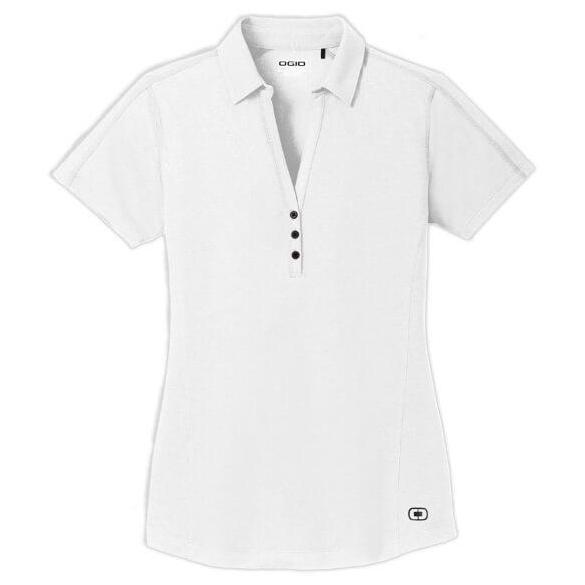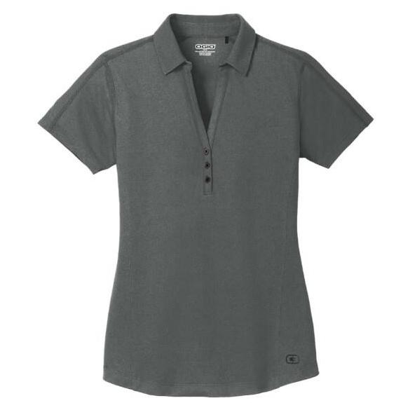 The fabric of the Onyx is a 5 oz., 53/47 cotton/polyester pique. The polyester helps provide moisture wicking properties, breathability, and a bit of stretch. The cotton provides structure, durability, and a soft hand. The collar of the Onyx Polo is a self-fabric collar, and comfortably lays flat, even after multiple wear/wash cycles. The ladies style features a longer cut that is made to be worn unucked, with stylish details like a Y-neck + buttoned placket, princess seaming, and a curved hem to give the best balance between comfort and a flattering fit.