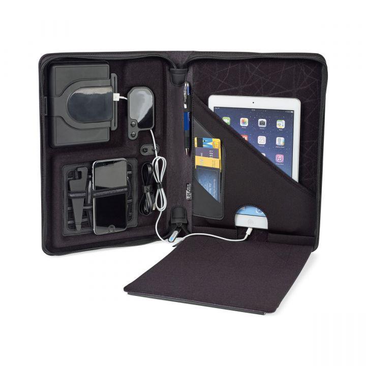 The tech-forward design of this smart padfolio, with its amazing organization features, makes it a sure winner for frequent travelers, executives, or for your sales team to keep them connected and ready to go in any situation.