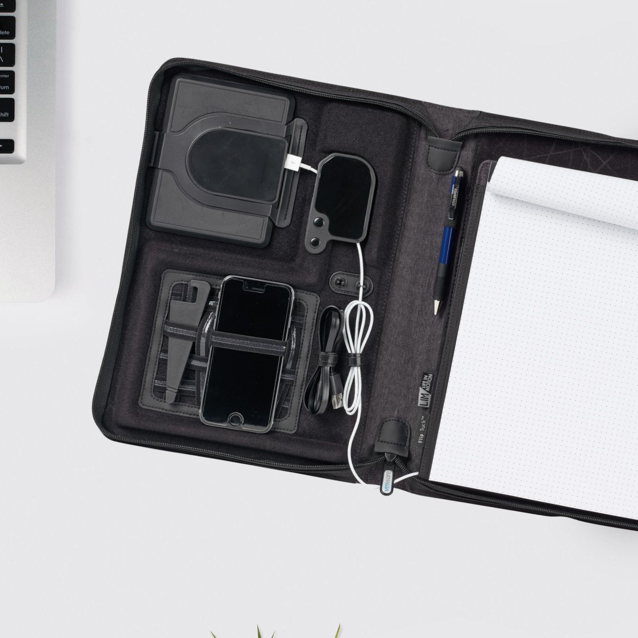 Executive padfolios, largely, have not kept up to the needs of the modern executive. With the plethora of devices that are used to stay connected with your business, there is a definite need for a padfolio that can organize all of your professional gear. The Life in Motion Charging Padfolio offers the storage needed for all of your business tech gear, with a built-in power bank to keep your devices juiced up and ready to go at a moment's notice.