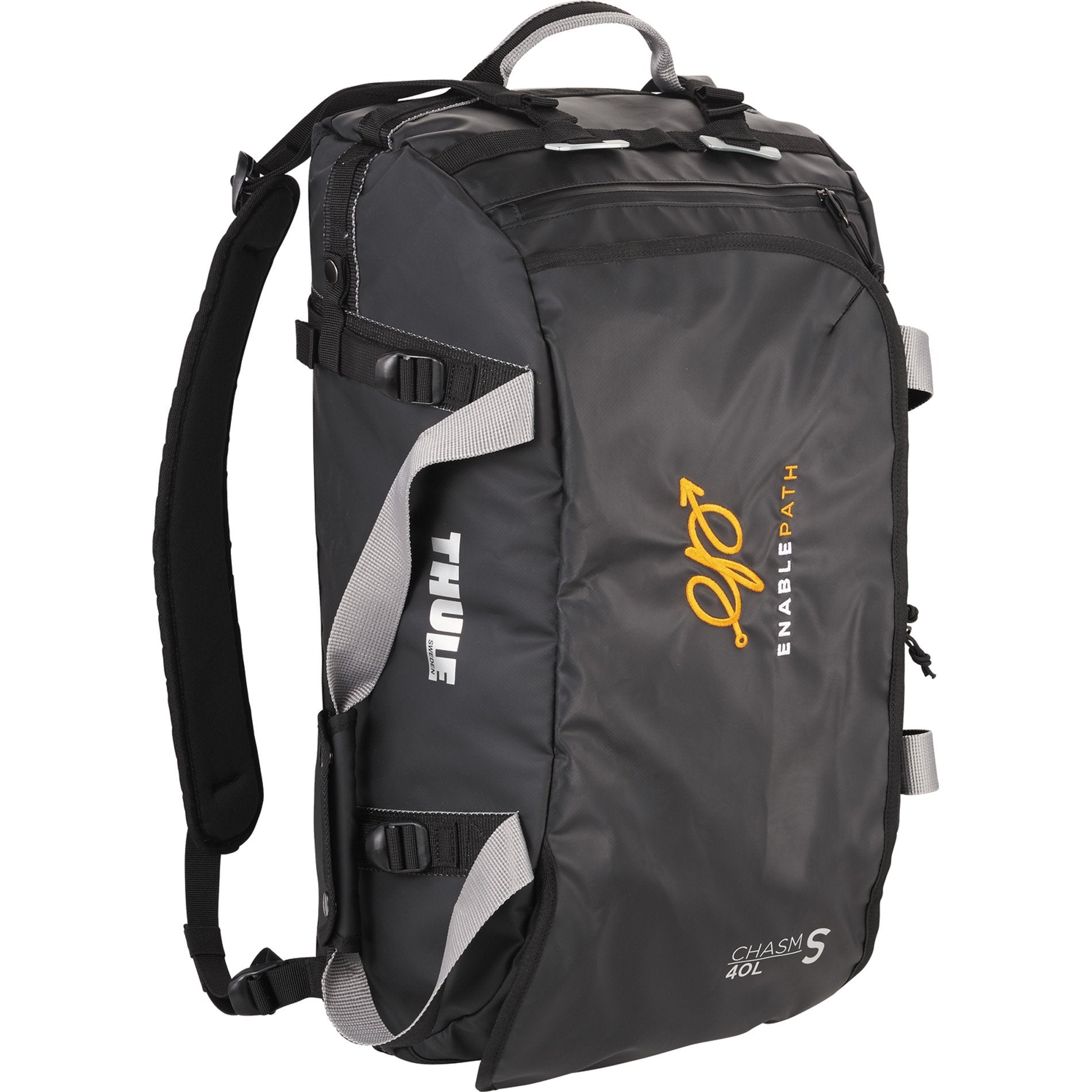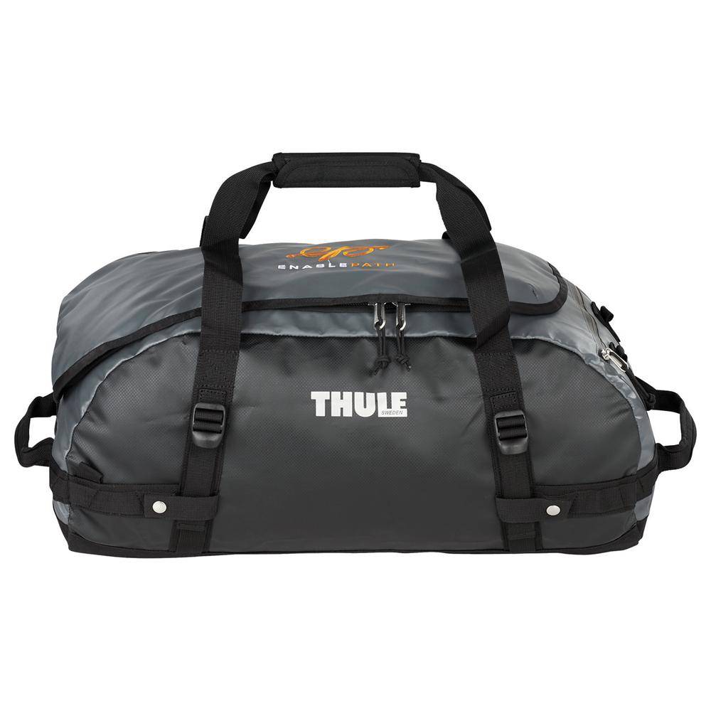The ultimate go-anywhere and do-anything duffel bag, the Thule Chasm 40L Duffel features a water-resistant tarpaulin shell, padded bottom, unique side-access zippered pocket, interior organization, and convertible straps to transform your duffel into a backpack. Your price includes embroidery on the top panel, up to 7,500 stitches or 4.5" x 4.5".